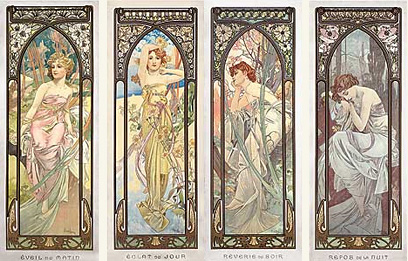 Denní doby – opravdu klasická ukázka z Muchova díla, vyzvala autora ke hře s barvami a světlem měnícím se v průběhu dne.
