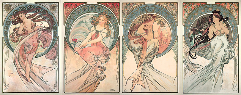 V této sérii, oslavující umělecké žánry, Mucha záměrně upouští od použití tradičních atributů, jako jsou hudební nástroje, ptačí brka nebo kreslířské náčiní. Místo toho klade důraz na tvořivou inspiraci přírodní krásou, pozadí jednotlivých uměleckých žánrů jsou inspirována přírodou a rozdílnými částmi dne: Tanec je představen v ranním vánku, který si pohrává s padajícími listy, Malířství je květ v poledním jasu, Poezie je zasnění nad krajinou s vycházející Večernicí a Hudba je zpěv ptáků za měsíčního svitu.